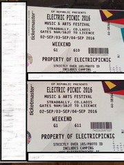 3 Day Camping Ticket for electric picnic festival in Stradbally between the 2nd of September 2016 to the 4th September 2016.